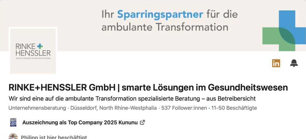 Seit 2022 beraten wir mit RINKE+HENSSLER bei der ambulanten Transformation – fundiert und umsetzungsstark.